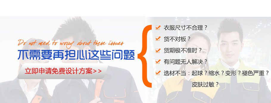 我們專業(yè)設計生產(chǎn):工廠制服、公司制服、工程制服、商場制服、社團制服、物業(yè)管理制服、醫(yī)用制服、防塵防靜電服、廣告衫、校服等等。